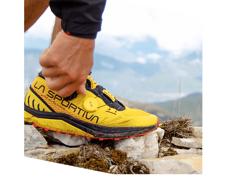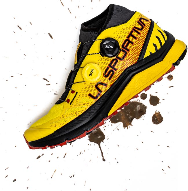 「ジャッカルⅡボア」は、ミドルからロングの距離を走り続けられるように、スポルティバのこだわりと革新的な技術を注ぎ込んだトレイルランニングシューズだ。