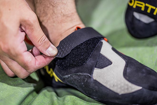 伸縮を繰り返すとダウントゥのシェイプが崩れていたこれまでのクライミングシューズの弱点をクリアしている。