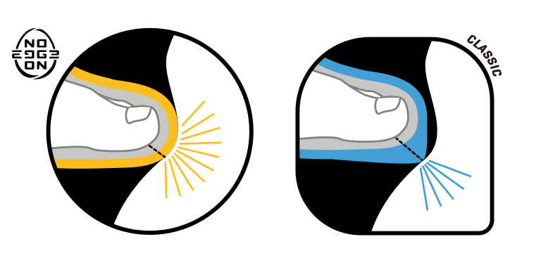 足指と壁の密着性を高めるのが、ノーエッジテクノロジー。