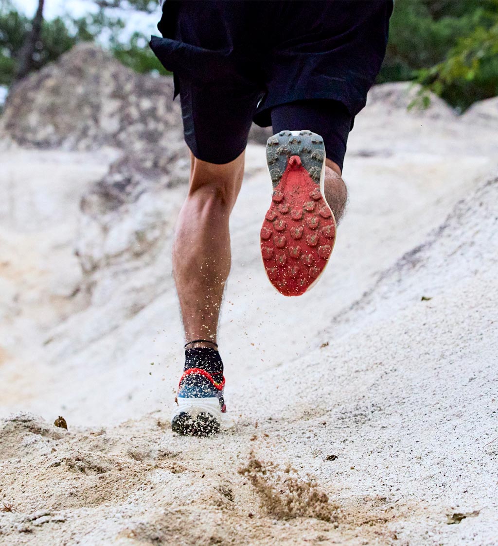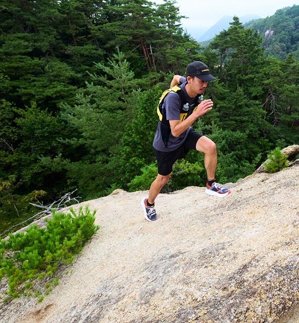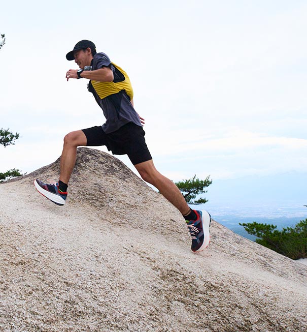 ウルトラディスタンスにおける衝撃から足の負担を軽減し、着地のパワーを効率よく推進力に変換する。