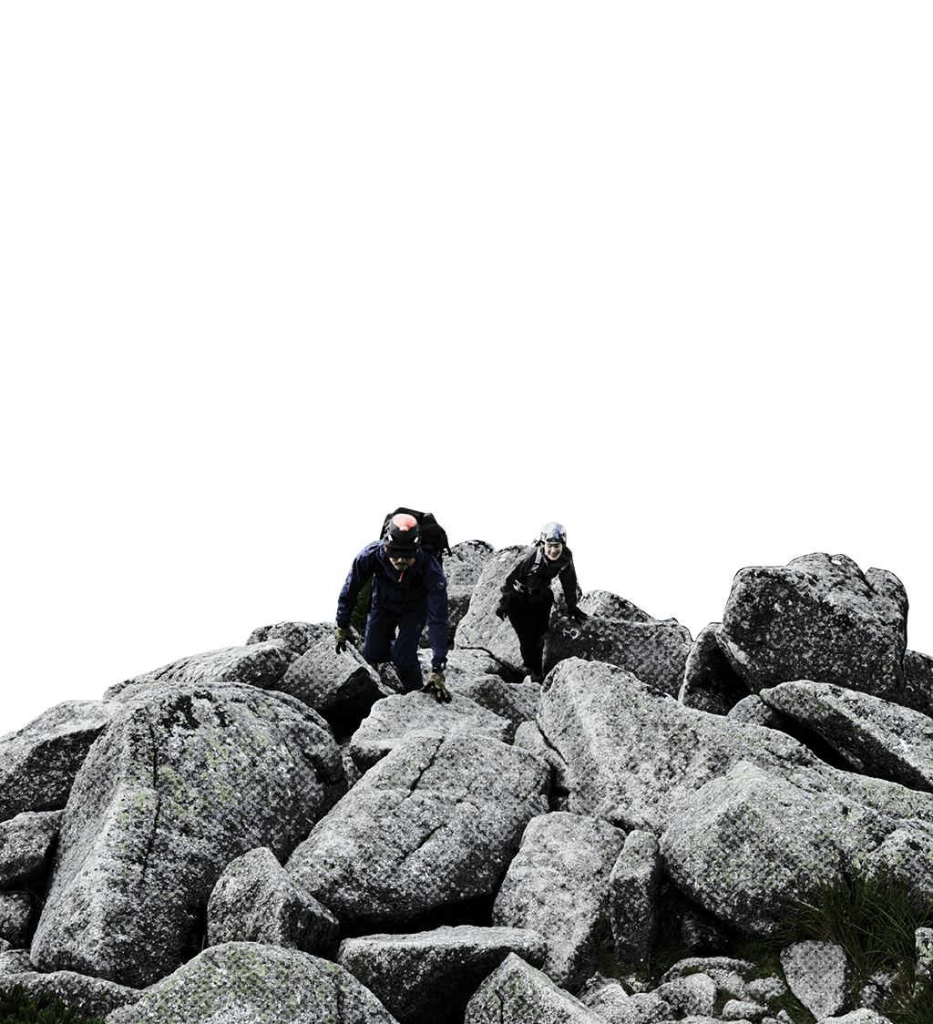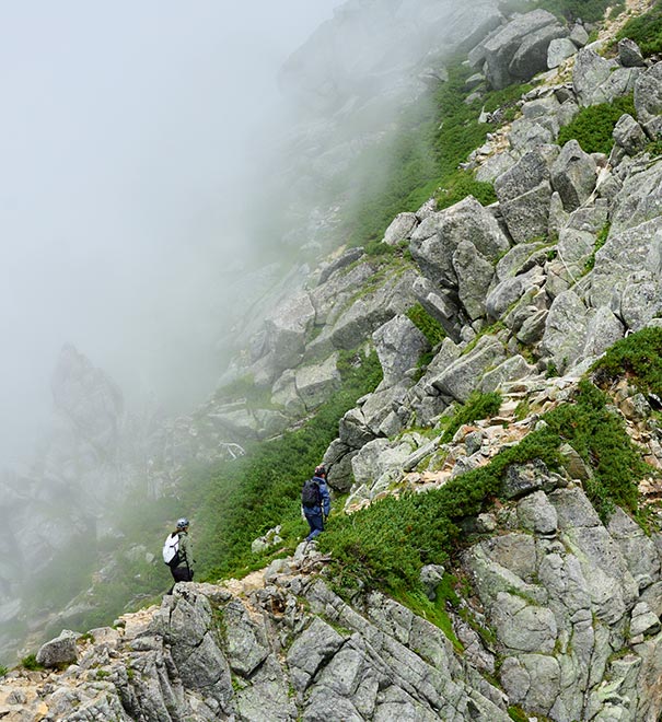 不安定な岩場、濡れた岩稜、長く続くアプローチ。登山者にとって過酷なシーンこそ、信頼できる足元が必要だ。