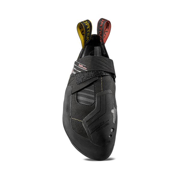 クライミングシューズの形状を長期間維持する構造。高いテンションをかけたラバーとフレーム設計により、長時間の使用でもフィット感と精度を損なわない。