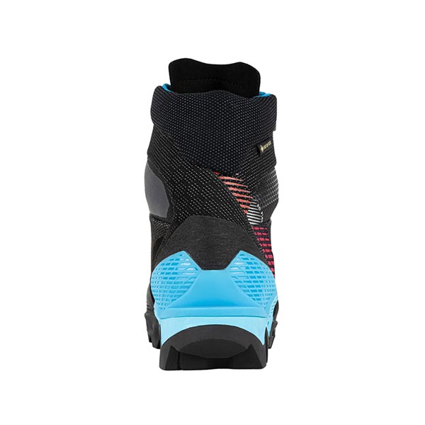 足首をしっかりホールドしながらも、前後左右への自然な可動域を確保する独自構造。登り・下り・トラバースなど、複雑な地形でも足裏全体が地面に接地しやすく、安定した歩行をサポートする。