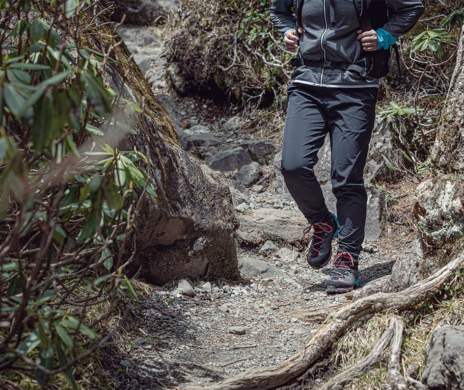 それほど、さまざまな路面状況(砂利、泥、砂など)でもグリップ力が高く、安定して歩けることに驚きました。急傾斜の登りや下りがあって、荒れた登山道も出てくるような山を4時間以上登るときに安心して履けるトレッキングシューズですね。