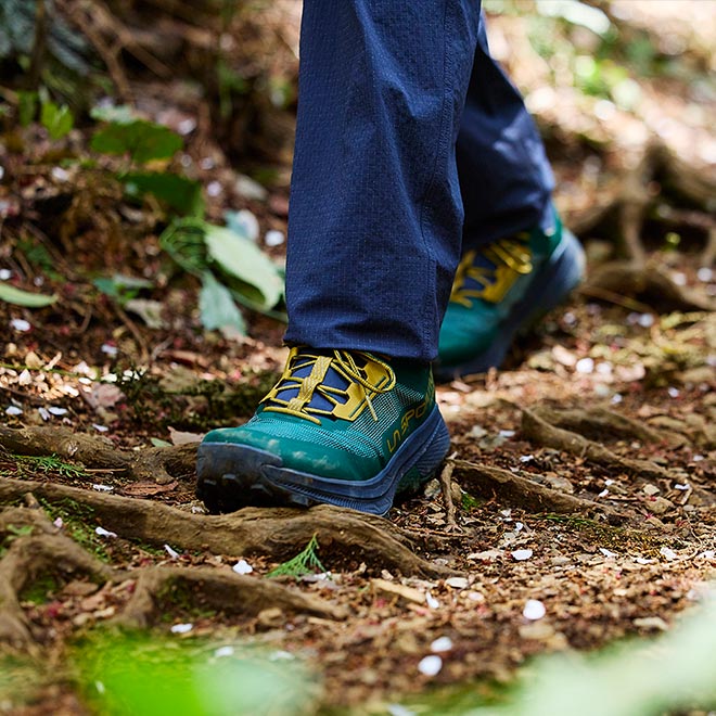 整備された登山道から岩場や木の根が張り出した不安定なトレイルまで、さまざまなトレイルシーンにたしかなグリップ力で対応する。