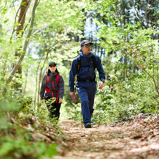 軽量ながら着地衝撃をしっかり吸収して下りの行動も安定する「プロディジオ ハイク」なら、より速くより遠くの目的地を目指せる。
