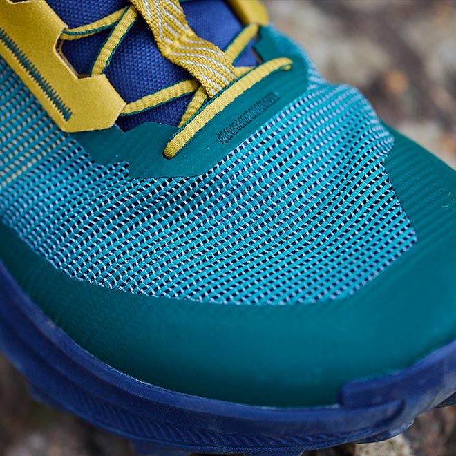 つま先にはラバー・トゥ・プロテクションを装備して、木の根や岩などの接触から足指をガード。